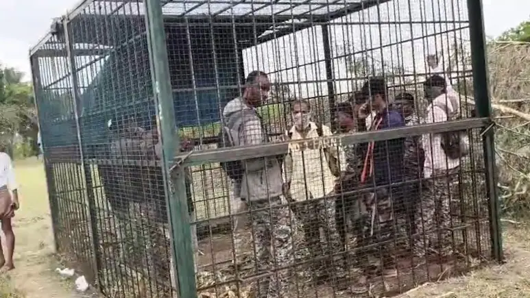 இதனால் கோபம்அடை ந்த கிராமத்தினர், வனத்துறை அதிகாரிகள் மற்றும் ஊழியர்கள் 10 பேரை, புலியை சிறை பிடிக்க வைக்கப்பட்டிருந்த கூண்டில் அடைத்து பூட்டினர்.