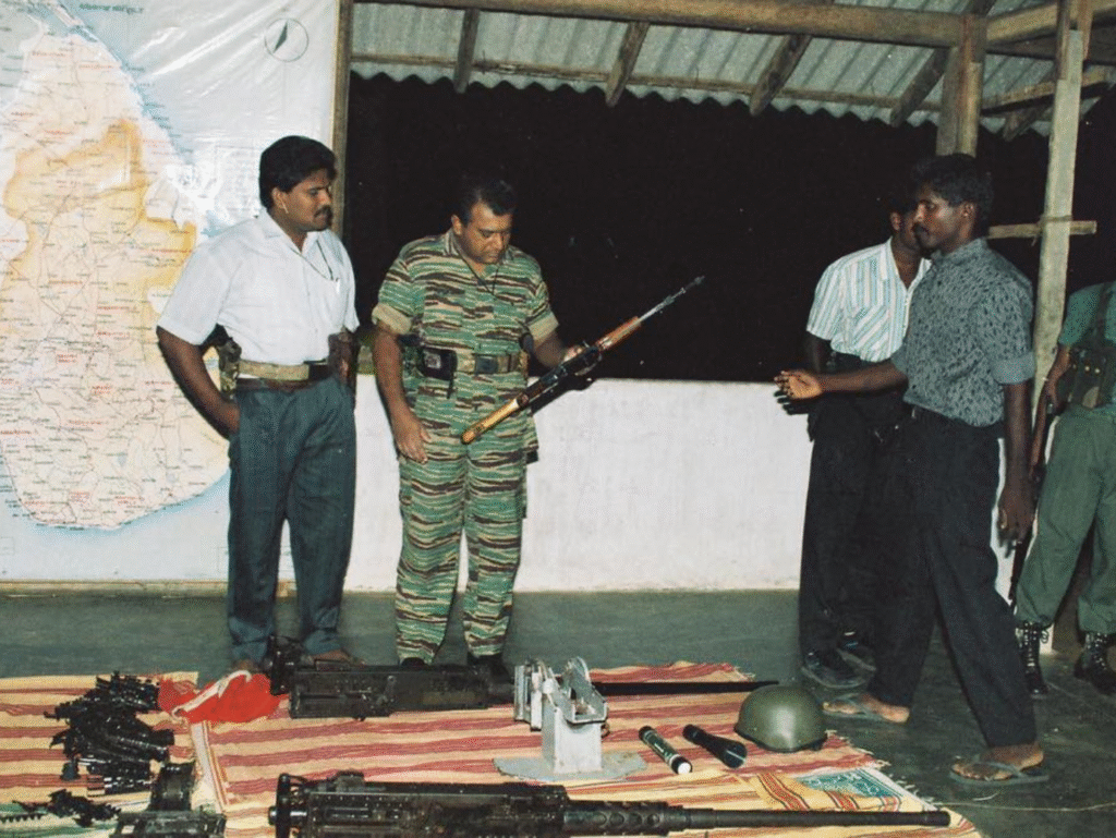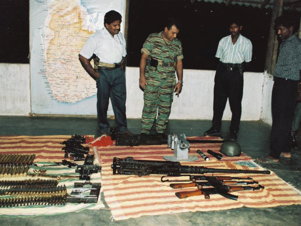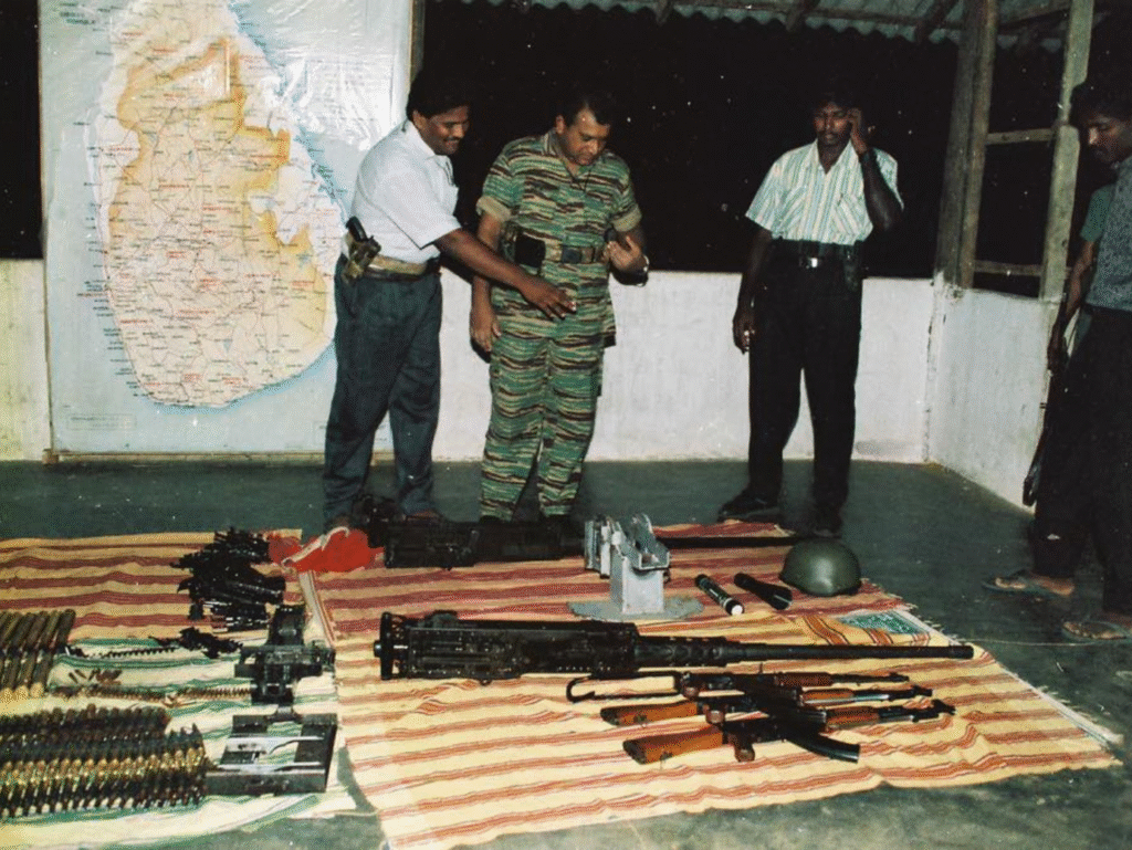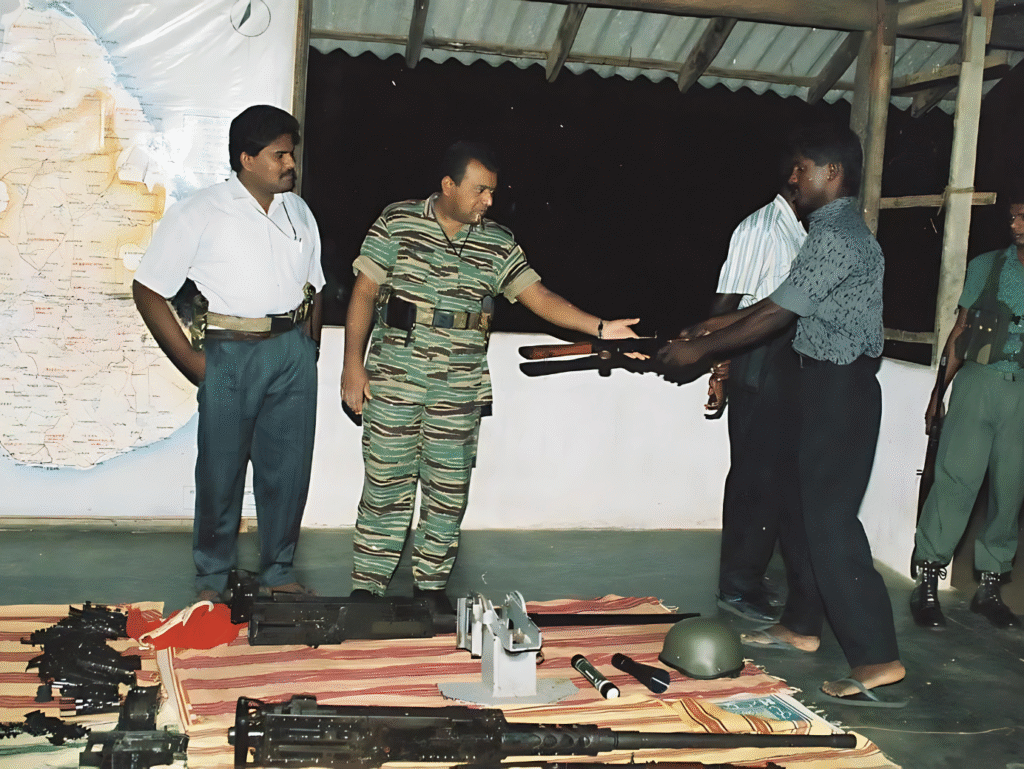 ஈழத்தின் வரலாறு தமிழீழம் “சாகரவர்த்தனா” போர்க்கப்பலில் கைப்பற்றபப்ட்ட ஆயுதங்களைப் பார்வையிடும் தமிழீழத் தேசியத் தலைவர்! 19 September, 1994 வட தமிழீழம். மன்னார் மாவட்டம் கற்பிட்டிக் கடற்பரப்பில் 19.09.1994 அன்று கரும்புலிகளால் மூழ்கடிப்பட்ட சிறிலங்கா கடற்படையின் சாகரவர்த்தனா” போர்க்கப்பலிலிருந்து கைப்பற்றபப்ட்ட ஆயுதங்களைப் பார்வையிடும் தமிழீழத் தேசியத் தலைவர் அவர்கள். Post navigation Previous: கப்டன் குமுதன் | 08.09.1994Next: கடற்கரும்புலி மேஜர் அன்பு | 20.09.1995 தொடர்புடைய இடுகைகள் ✍🏻 அகவை வாழ்த்து தமிழீழம் அகவை வாழ்த்து – அக்டோபர் 21 21 October, 2025 தமிழீழம் நினைவு வணக்கம் நினைவு வணக்கம் – அக்டோபர் 21 21 October, 2025 English News தமிழீழம் முதன்மை செய்திகள் Mylvaganam Nimalarajan: The Journalist Who Gave His Life for Truth 20 October, 2025 Leave a Reply Cancel replyYour email address will not be published. Required fields are marked *Comment * Name * Email * Website Save my name, email, and website in this browser for the next time I comment.