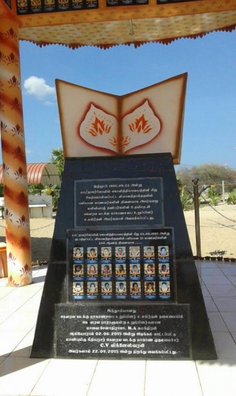 1995ஆம் ஆண்டு செப்ரெம்பர் இருபத்தோராம் திகதி வடமராட்சியின் பல பாகங்களுக்கும் பலாலியிலிருந்து இராணுவத்தினர் எறிகணைத் தாக்குதலை மேற்கொண்டனர். மறுநாள் இருபத்திரண்டாம் திகதி வெள்ளிக்கிழமை 6:30 மணிக்கு வடமராட்சி கிழக்குப் பகுதியில் விமானப்படையின் “புக்காரா” குண்டுவீச்சு விமானம் மணற்காடு கிறிஸ்தவ தேவாலயத்துக்கு அருகில் குண்டுத்தாக்குதலை மேற்கொண்டதில் தேவாலயம் சேதமடைந்ததுடன், மணற்காட்டைச் சேர்ந்த இரத்தினம் அன்ரனிதாஸ் (எட்டு வயது), மனோகரதாஸ் மரியஜித் (பத்து வயது), ஜோன்பொஸ்கோ கார்மிளா (ஐந்து வயது) ஆகிய மூவரும் உயிரிழந்ததுடன், பலர் படுகாயமடைந்தனர். அன்றைய தினம் (22.09.1995) வடமராட்சி கிழக்கில் காலை பதற்றமாக இருந்தபோதும் நாகர்கோயில் மகா வித்தியாலயத்துக்கு வழமைபோல மாணவர்கள் வந்தனர்