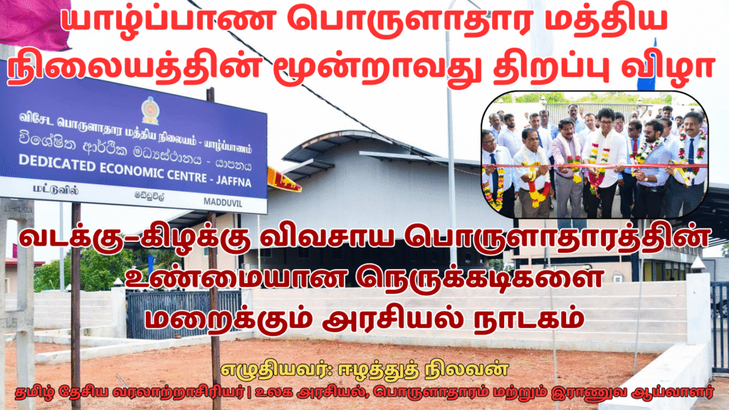 ஆனால் இந்த “திறப்பு விழா நாடகங்கள்” அனைத்தும் பொது நிதியிலேயே நடத்தப்பட்டு வருகின்றன. இதற்கிடையில் வடக்கு–கிழக்கின் விவசாய பொருளாதாரம் கடுமையான அழிவைச் சந்தித்துக் கொண்டிருப்பதைப் பற்றி எந்த அரசியல்வாதிகளும் சிந்திக்கவில்லை.