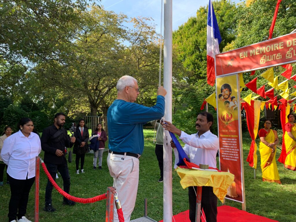 தமிழீழத் தேசியக்கொடியை பிரான்சு தமிழர் ஒருங்கிணைப்புக்குழு அரசியல் பிரிவு துணைப் பொறுப்பாளர் செல்வி அச்சுதாயினி பாக்கியநாதன் அவர்கள் ஏற்றிவைத்தார்.