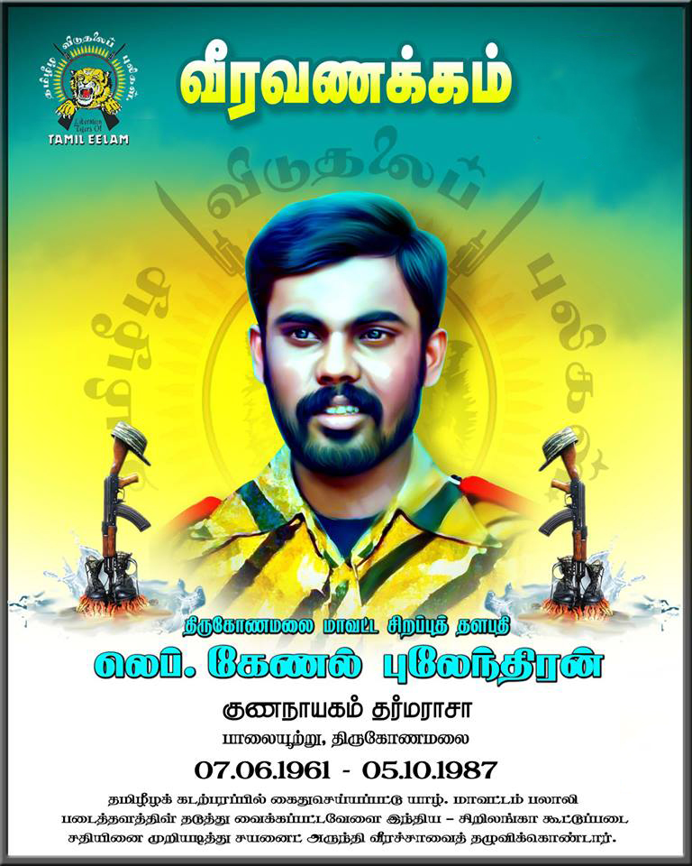 திருமலைமாவட்ட தளபதி லெப்.கேணல் புலேந்திரன் (குணநாயகம் தருமராசா – பாலையூற்று, திருகோணமலை.)