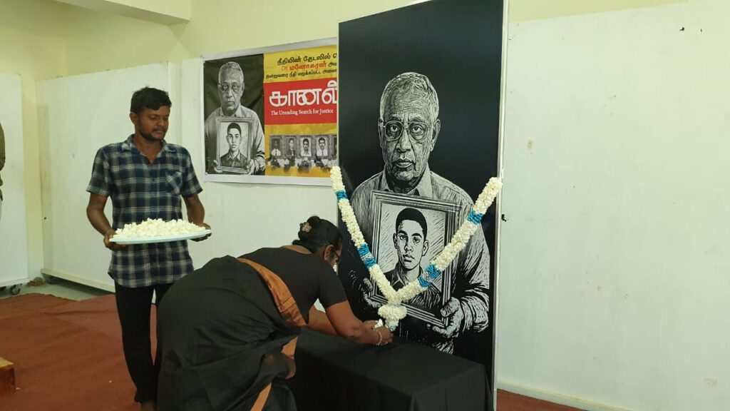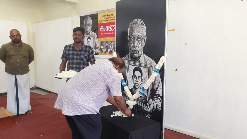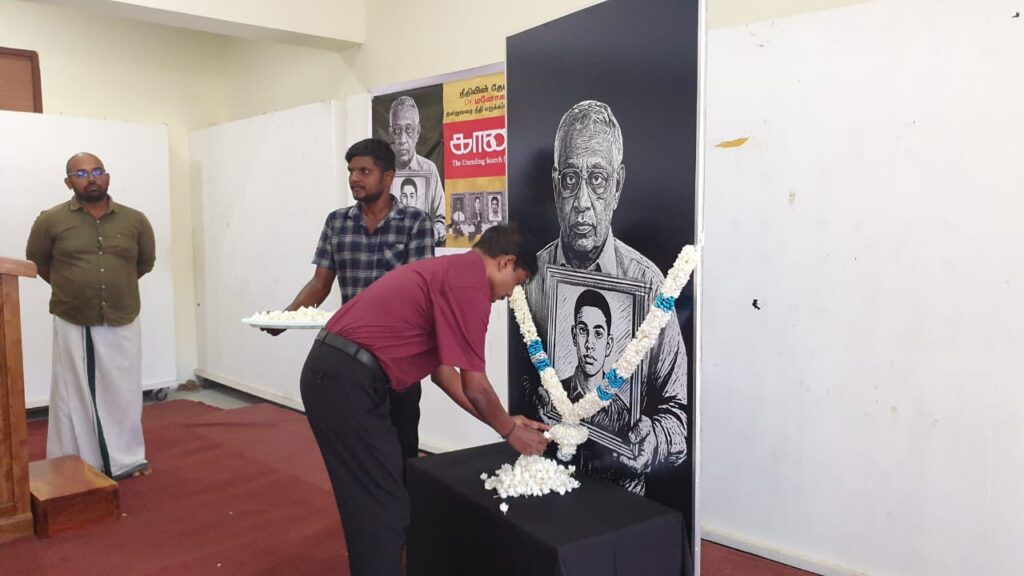 திருகோணமலையில் 2009’ம் ஆண்டு இராணுவத்தால் சுட்டுப்படுகொலை செய்யப்பட்ட மாணவர்களுக்கான நீதி கோரி போராடிய வைத்தியர் மனோகரனையும் படுகொலை செய்யப்பட்ட மாணவர்களையும் நினைவு கூரும் “கானல் நீதி” எனும் தலைப்பிலான உரையாடல் யாழ்ப்பாணம் தந்தை செல்வா அரங்கில் திங்கட்கிழமை (06.10.2025) இடம்பெற்றது.