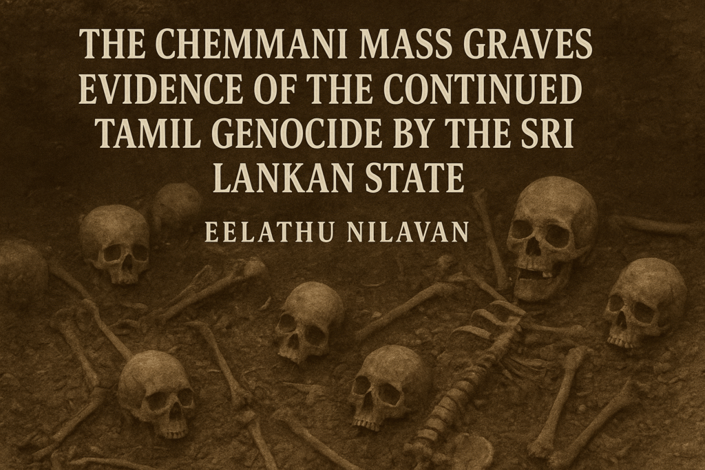 Chemmani is a permanent scar. It stands as a symbol of the Tamil nation’s thirst for justice. Every buried body is a witness; every fragment of bone continuously screams for the international community to excavate the ultimate evidence that the Sinhala state massacred Tamils with the cold efficiency of a machine.