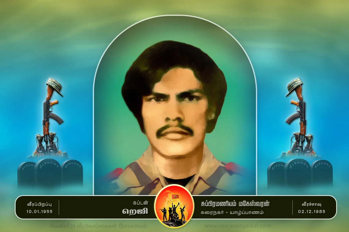 கப்டன் றெஜி அவர்கள் 02.12.85 அன்று மணலாறு பட்டிக்குடியிருப்பல் சிறீலங்கா படையினர் பதுங்கியிருந்து தாக்கியதில் விழுப்புண்ணடைந்து நிலையில் சயனைட் உட்கொண்டு வீரச்சாவடைந்தார்.