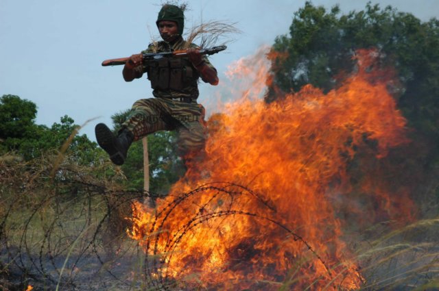 எதிரியின் இயந்திரத்துப்பாக்கி சடசடக்க நான் நேரே செல்கிறேன் நீங்கள் பக்கவாட்டாக நகருங்கள் என்றான் ஒருவீரன்