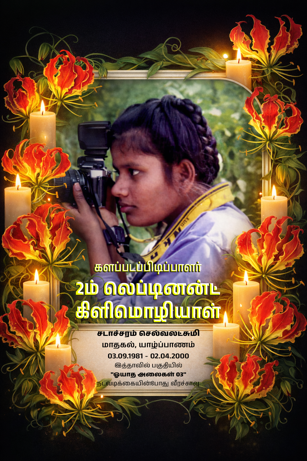 களம் நடுவே புகைப்படக்கருவியுடன் இவள் மடிந்தாள்.