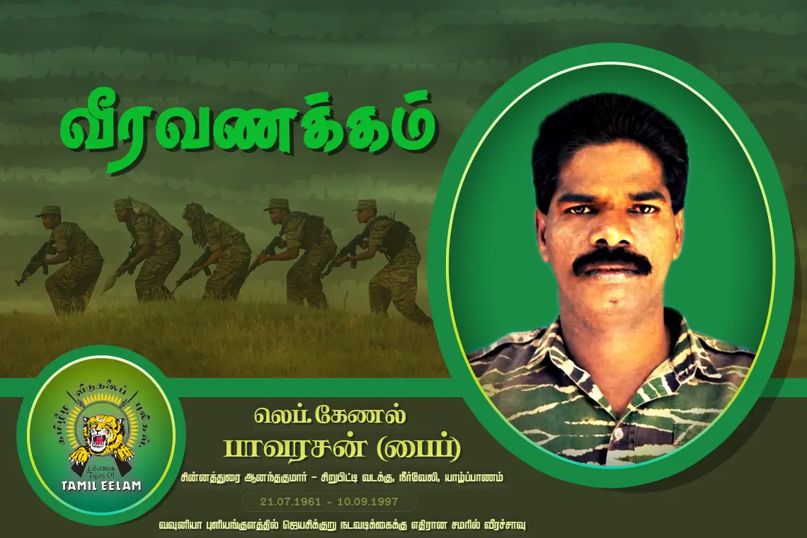 வவுனியா புதூர் பகுதியில் 10.09.1997 அன்று சிறிலங்கா படையினரின் இந்த வல்வளைப்பு வளைப்பு நடவடிக்கைக்கு எதிரான சமரில் வீரச்சாவைத் தழுவிக்கொண்ட 24 மாவீரர்களின் 28’ம் ஆண்டு வீரவணக்க நாள்.
