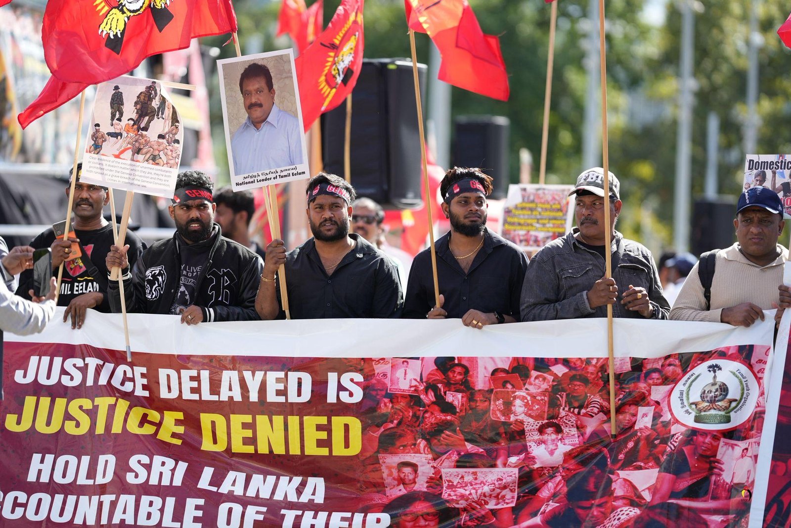 இலங்கையில் இடம்பெற்ற மனித உரிமை மீறல்களைப் பிரதிபலிக்கும் வகையில் பதாதைகளை ஏந்தியும், கோஷங்களை எழுப்பியும் போராட்டத்தில் ஈடுபட்ட அவர்கள், சர்வதேச நீதிப்பொறிமுறையைக்கோரி பேரணியாகச் சென்றனர்.