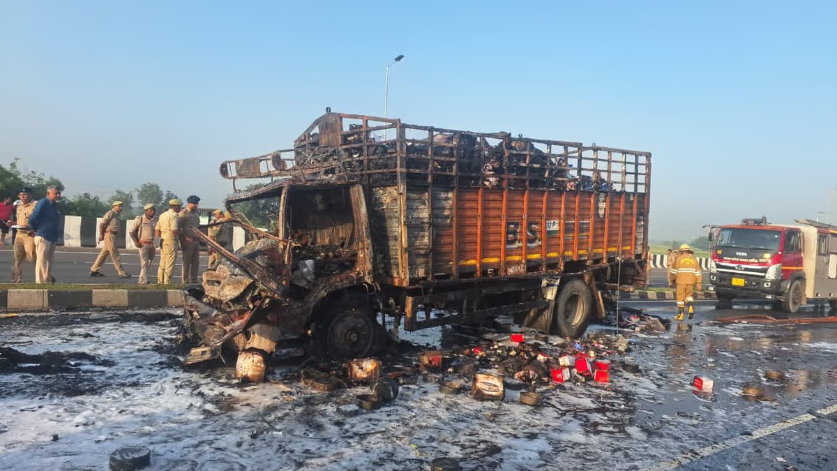 மோதிய வேகத்தில் பெட்ரோல் டேங்க் தீப்பிடித்ததால் வாகனங்கள் எரிந்து சேதம் அடைந்தன. விபத்தில் 4 பேர் உயிரிழந்துள்ளனர். அவர்களின் அடையாளம் தெரியவில்லை. விபத்து காரணமாக ஆக்ரா-அலிகார் சாலையில் போக்குவரத்து தற்காலிகமாக நிறுத்தப்பட்டு உள்ளது. – இவ்வாறு எஸ்.பி. அமித் ஜெயின் கூறினார்.