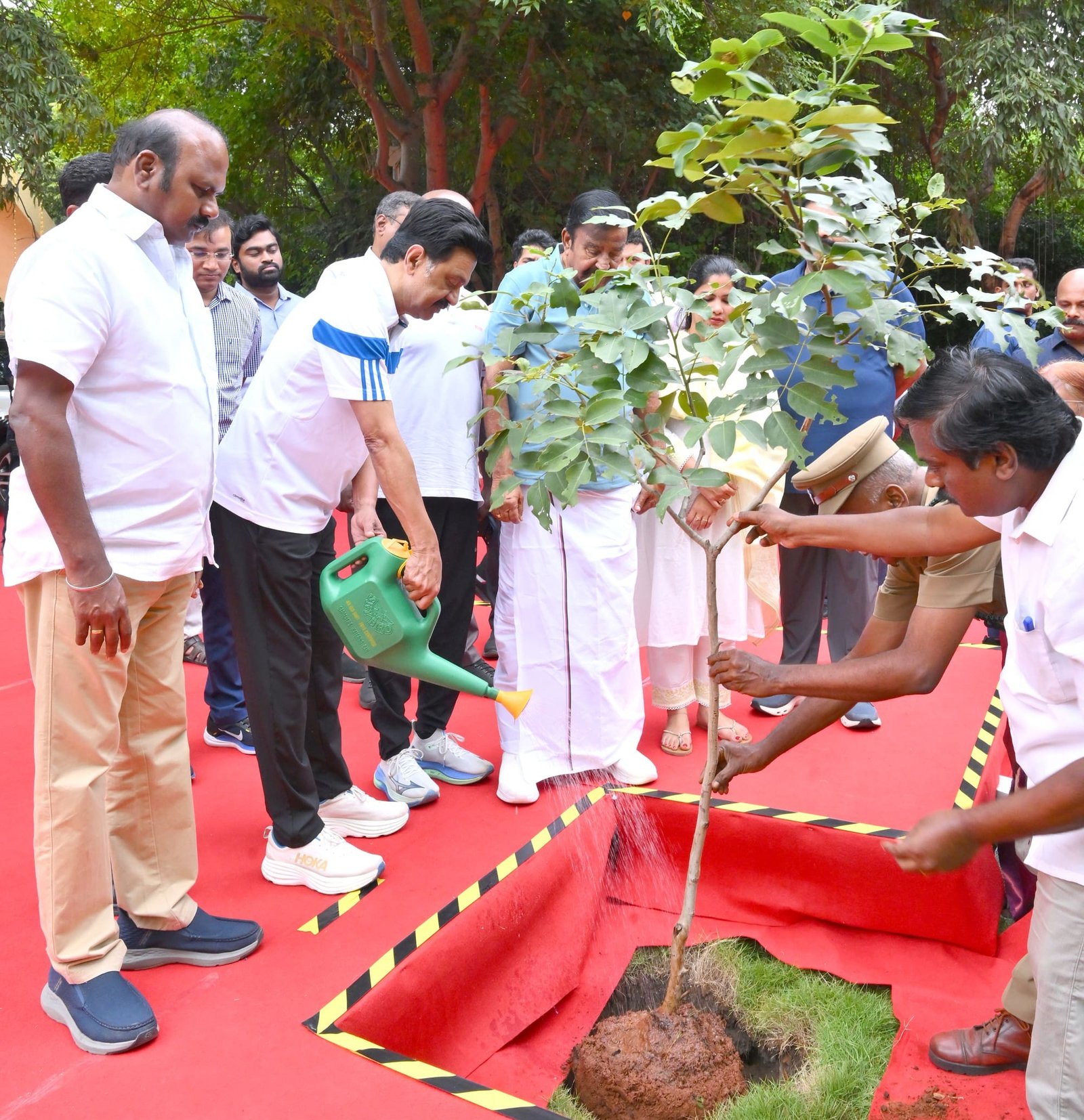 தொல்காப்பிய பூங்காவில் மேற்கொள்ளப்பட்ட பல்வேறு மேம்பாட்டு பணிகளை நேற்று பார்வையிட்ட முதல்வர் ஸ்டாலின், கொன்றை மரக்கன்றை நட்டு வைத்தார்.