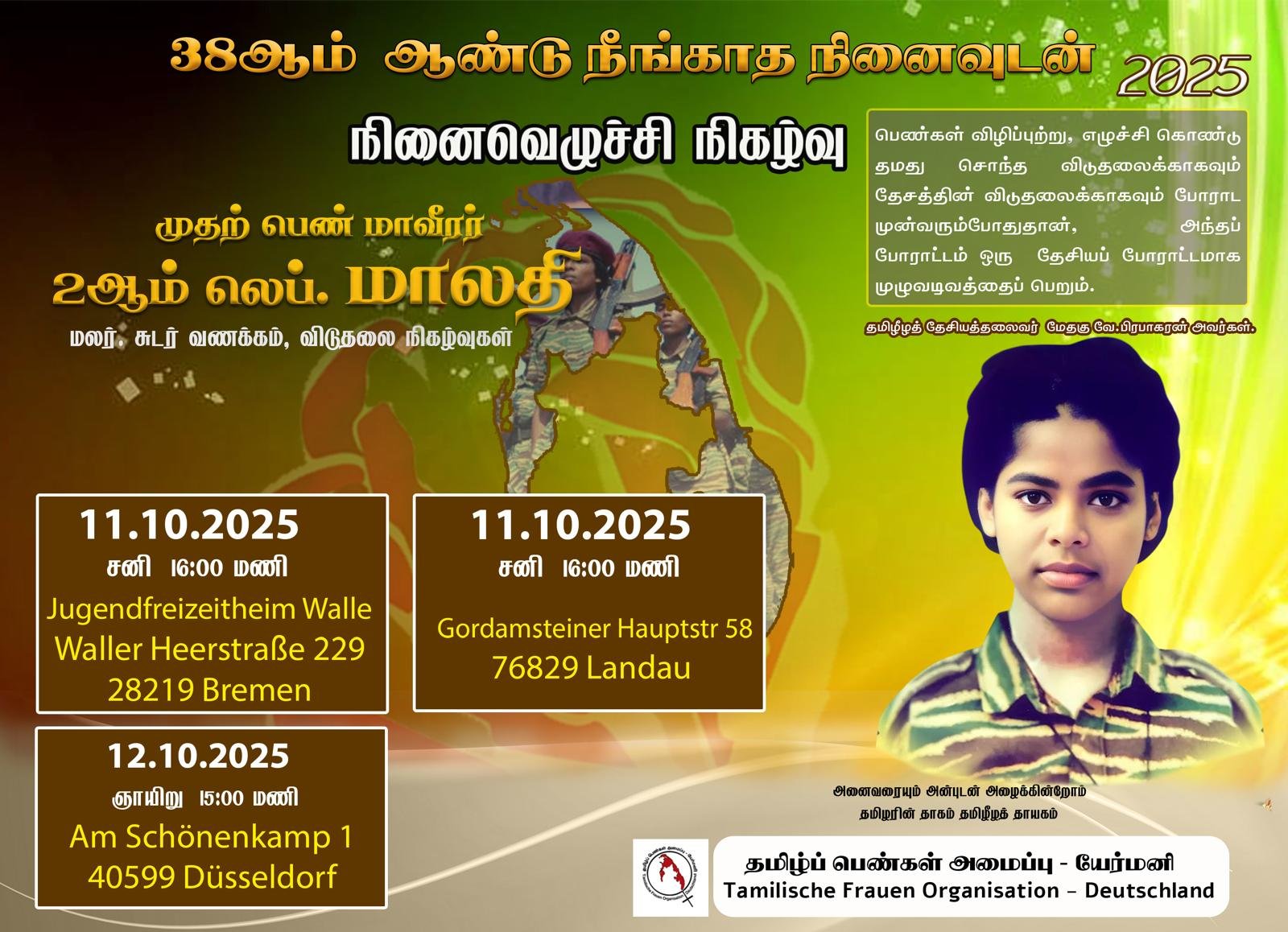 நிகழ்வுகள்புலம்பெயர் தமிழர்கள் தமிழீழப் பெண்கள் எழுச்சி நாள் 2025 – யேர்மனி written by 8 October 2025 0 comments 0FacebookTwitterPinterestEmail 9 தமிழீழப் பெண்கள் எழுச்சி நாள் 2025 – யேர்மனி பகிரவும் Print (Opens in new window) Print Share on WhatsApp (Opens in new window) WhatsApp Post Share on Telegram (Opens in new window) Telegram Email a link to a friend (Opens in new window) Email Share on Tumblr Share on Threads (Opens in new window) Threads Like this:Like Loading... Related Tamil Diaspora - புலம்பெயர் தமிழர்கள் 0 FacebookTwitterPinterestEmail Amizhthu previous post தமிழீழப் பெண்கள் எழுச்சி நாள் 2025 – நியூசிலாந்து next post தமிழீழப் பெண்கள் எழுச்சி நாள் 2025 – பின்லாந்து Leave a ReplyCancel reply
