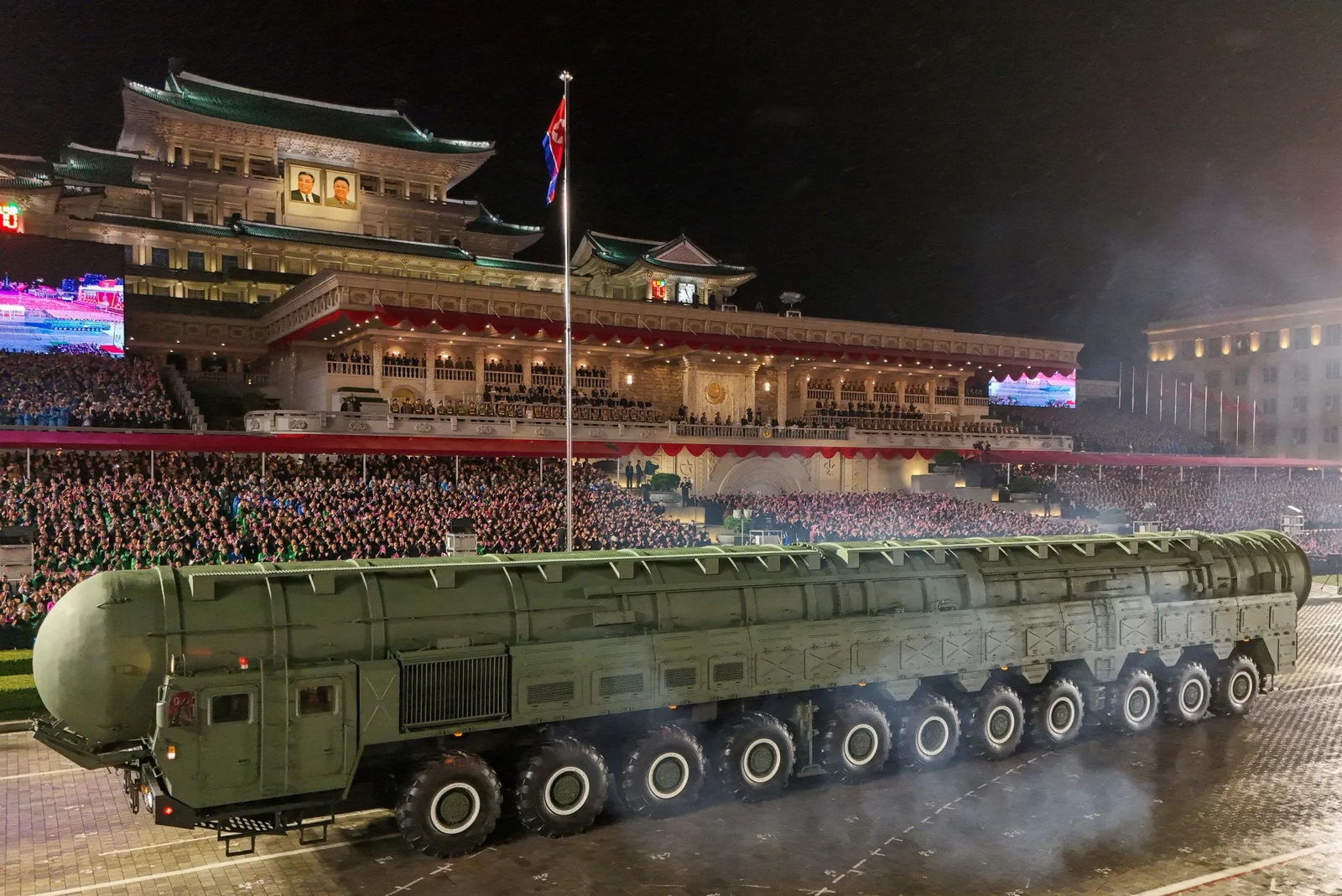வடகொரியாவின் ஆளும் கட்சியான கொரிய தொழிலாளர் கட்சியின் 80வது ஆண்டு நிறைவை குறிக்கும் வகையில் நடத்தப்பட்ட மாபெரும் ராணுவ அணிவகுப்பில், சக்திவாய்ந்த புதிய அணுசக்தி ஏவுகணை முதல் முறையாக காட்சிப்படுத்தப்பட்டது.