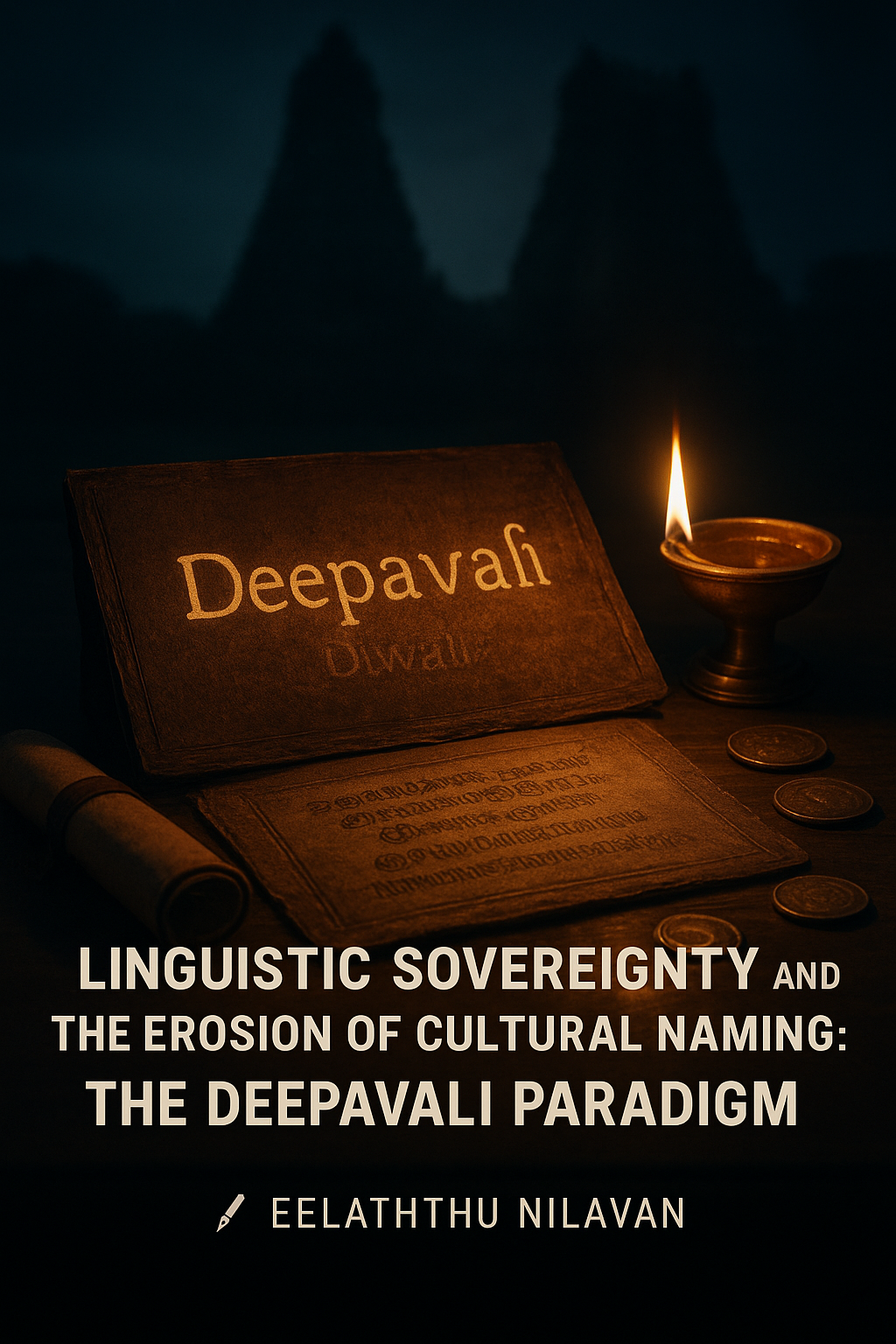 The passive adoption of the shortened form by cultures that adhere to the original, such as the Tamil-speaking world, constitutes a subtle linguistic capitulation. This is particularly critical as Deepavali remains the established, formal, and culturally resonant term across South India, Malaysia, Singapore, and the diaspora.