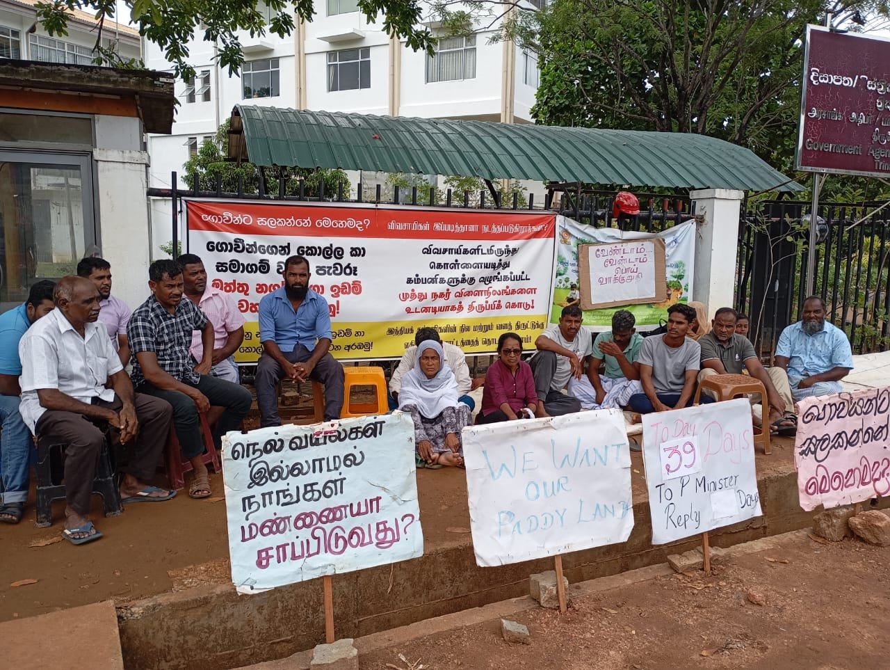 திருகோணமலை முத்து நகர் விவசாயிகள் இன்று (25.10.2025) சனிக்கிழமையுடன் 39 ஆவது நாளாக தொடர் சத்தியாக்கிரகப் போராட்டத்தை திருமலை மாவட்ட செயலகம் முன்பாக நடாத்தி வருகின்றனர்.