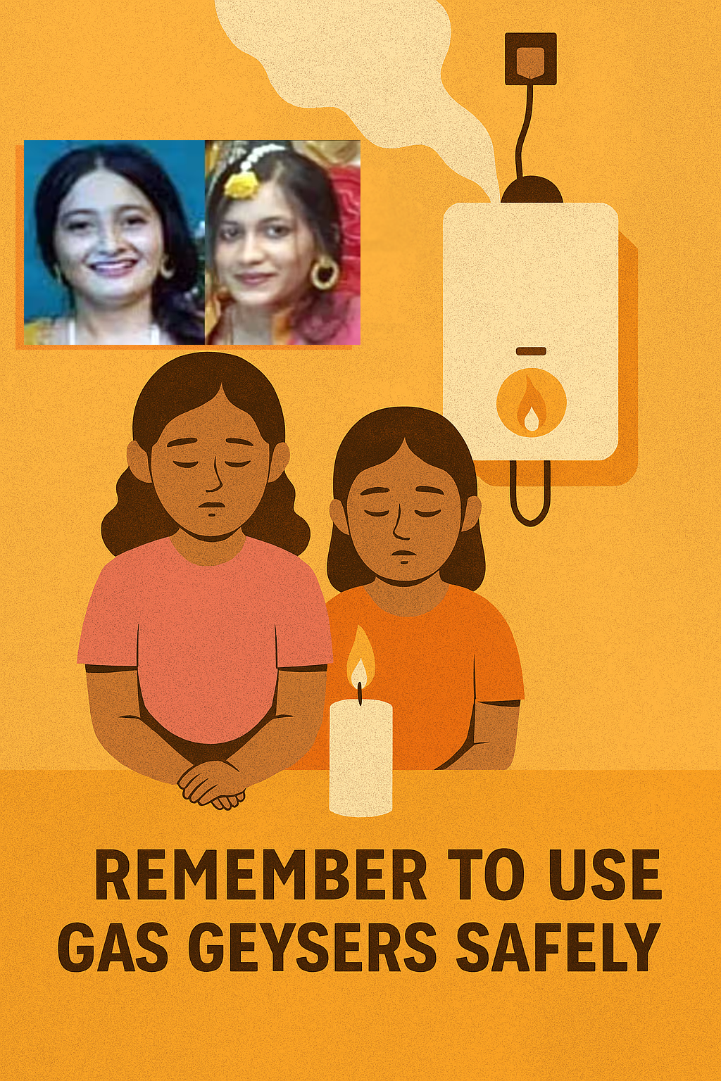 ”எனவே, குளியல் அறையில் கீசரை பயன்படுத்தும்போது, மக்கள் கவனமாக இருக்க வேண்டும். குளியல் அறையில் வென்டிலேட்டர் உள்ள இடத்தில் கீசர் வையுங்கள்,” என்றார்.