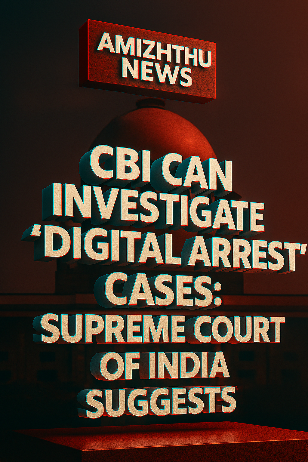 ‘நாடு முழுதும், ‘டிஜிட்டல் கைது’ என்ற பெயரில் நடக்கும் சைபர் கிரைம் மோசடி குறித்து சி.பி.ஐ., விசாரிக்கலாம்’ என, உச்ச நீதிமன்றம் யோசனை தெரிவித்துள்ளது.