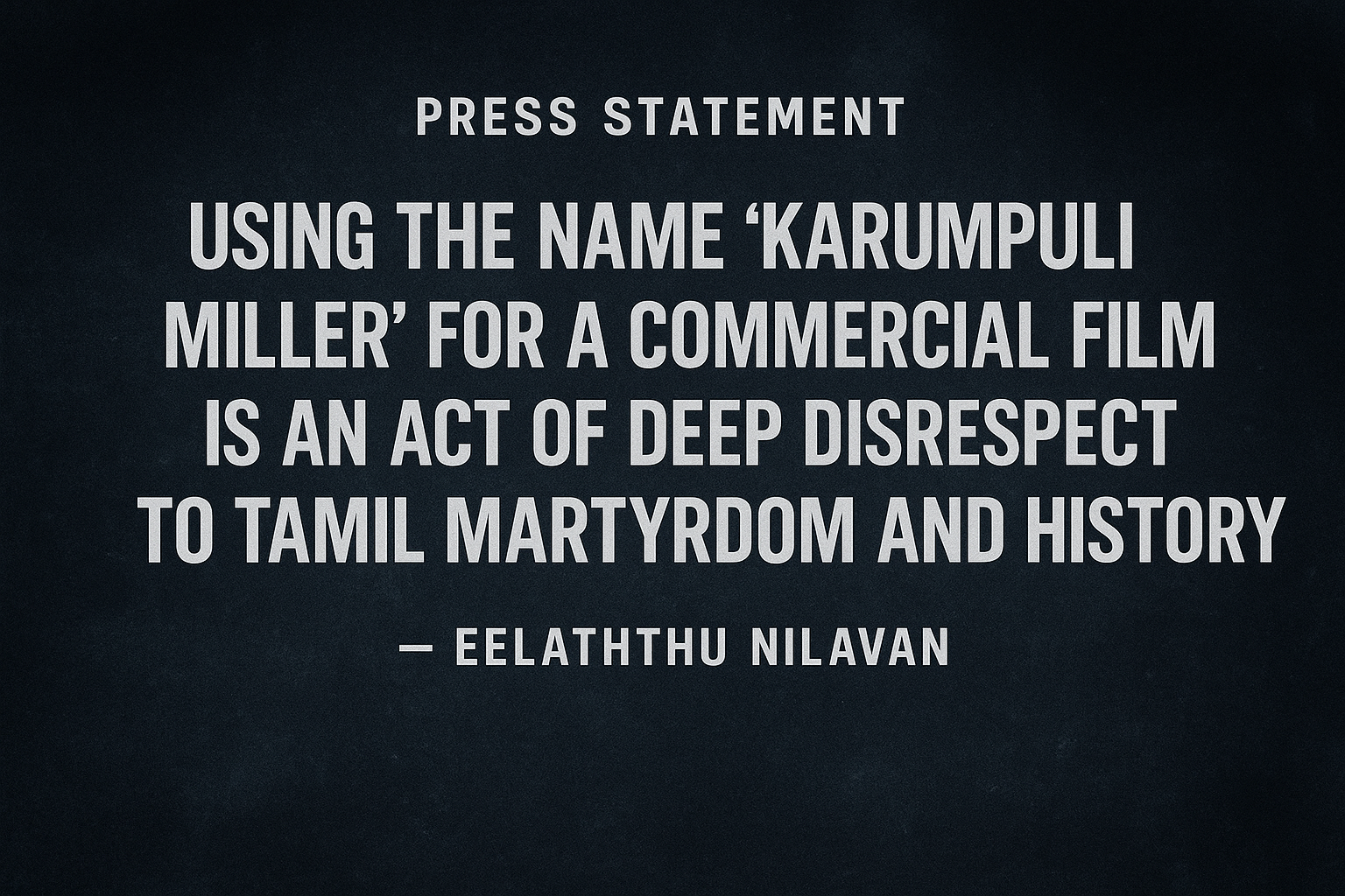Some individuals, under the banner of “Tamil cinema,” are attempting to distort Tamil history and insult the sacrifices of our freedom fighters for their personal fame and profit. This is not art — this is the commercialization of Tamil history.