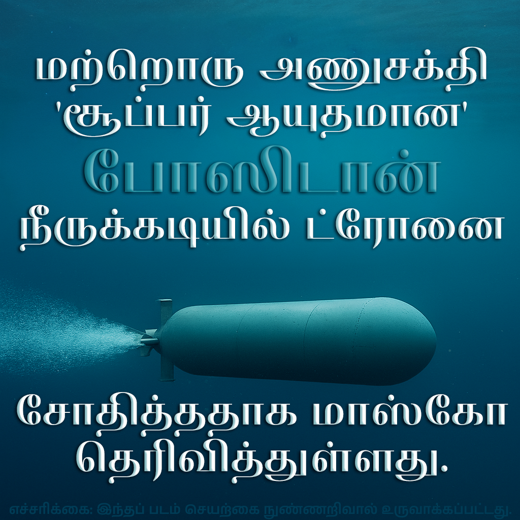 அணுசக்தியால் இயங்கும் பியூரெவெஸ்ட்னிக் ஏவுகணையின் சோதனையை அறிவித்த மூன்று நாட்களுக்குப் பிறகு, புதன்கிழமை மாஸ்கோ அணுசக்தியால் இயங்கும் நீருக்கடியில் ட்ரோனான போஸிடானையும் சோதித்ததாகக் கூறியது. உக்ரைனில் போர் நிறுத்தத்திற்கு மாஸ்கோ தயக்கம் காட்டியதால் அமெரிக்காவுடனான பேச்சுவார்த்தைகள் ஸ்தம்பித்த நிலையில், ஒரு வாரத்தில் இரண்டாவது அணு ஆயுத சோதனை வந்துள்ளது.