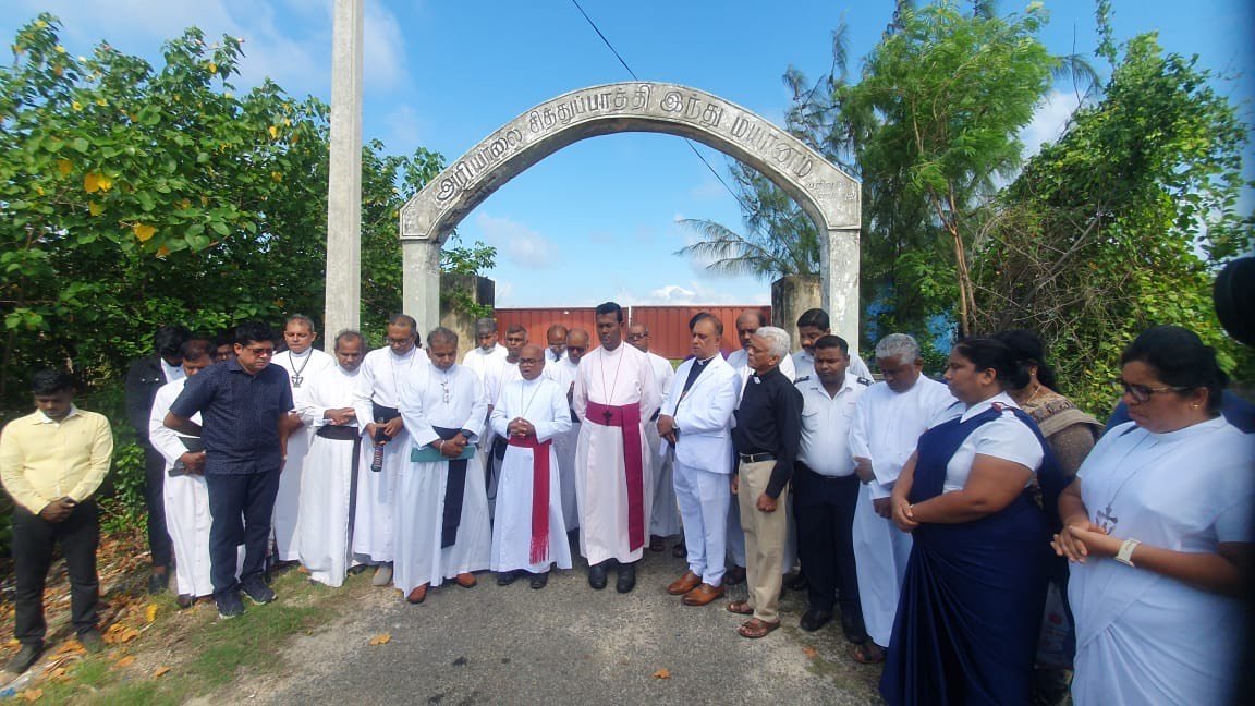 முன்னதாக அணையா தீப தூபிக்கு மலர்மாலை அணிவித்து அஞ்சலி செலுத்திய தேசிய கிறிஸ்தவ மன்ற ஆயர் பேரவையினர் அங்கிருந்து ஊர்வலமாக, மனித புதைகுழி காணப்படும் சிந்துபாத்தி இந்து மயான நுழைவாயிலுக்கு சென்று அங்கும் அஞ்சலி செலுத்தியிருந்தனர்.
