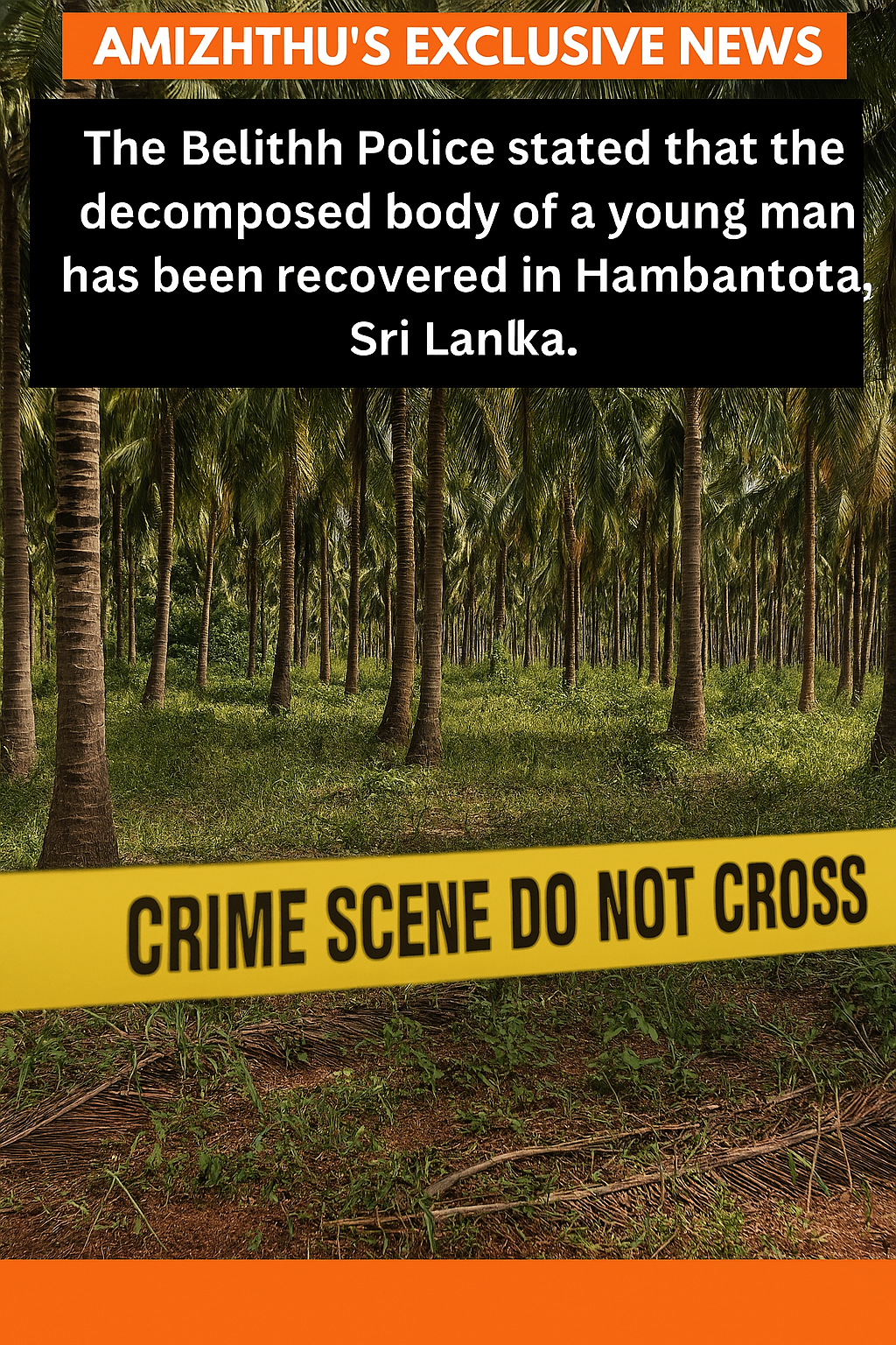 அம்பாந்தோட்டையில் பெலியத்தை பொலிஸ் பிரிவுக்கு உட்பட்ட நாகுலுகமுவ, தெத்துவாவெல பிரதேசத்தில் உள்ள தென்னந்தோப்பில் நேற்று வியாழக்கிழமை (30.10.2025) காலை சிதைவடைந்த நிலையில் இளைஞன் ஒருவரின் சடலம் மீட்கப்பட்டுள்ளதாக பெலியத்தை பொலிஸார் தெரிவித்தனர்.
