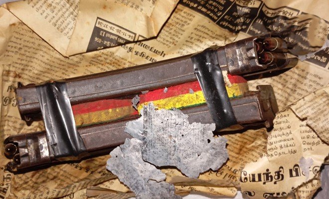 யாழ்ப்பாண பல்கலைக்கழக நூலகத்தின் மேற்கூரைக்குள் யாழ்ப்பாணத்தில் இருந்து வெளிவரும் பிரதேச பத்திரிகை ஒன்றின் 2005ஆம் ஆண்டு வெளியான பத்திரிக்கை ஒன்றில் சுற்றப்பட்ட நிலையில் , இரண்டு துப்பாக்கி மகசீன்கள் மற்றும் வயர் துண்டு என்பவற்றை நேற்றைய தினம் வியாழக்கிழமை ஊழியர்கள் கண்டுள்ளனர்.