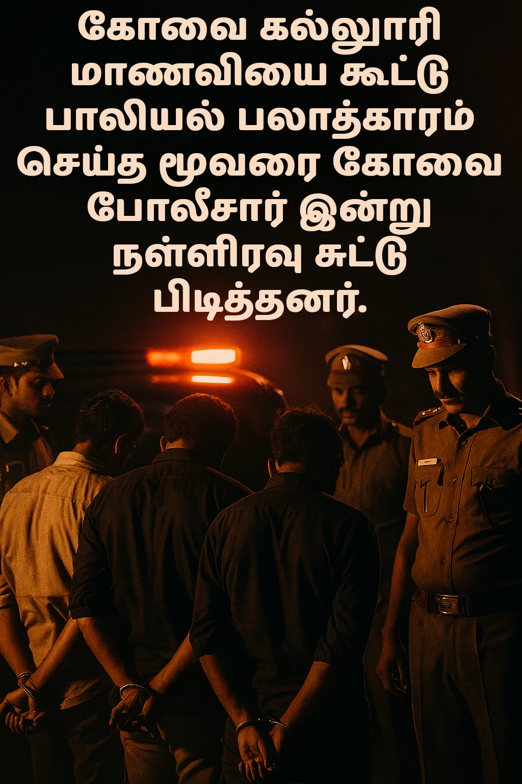 கோவையில் ஆண் நண்பருடன் காரில் அமர்ந்து பேசிக் கொண்டிருந்த மதுரையைச் சேர்ந்த கல்லுாரி மாணவியை, கத்தி முனையில் கடத்தி, கூட்டு பாலியல் பலாத்காரம் செய்த மூவரை கோவை போலீசார் இன்று நள்ளிரவு சுட்டு பிடித்தனர்.