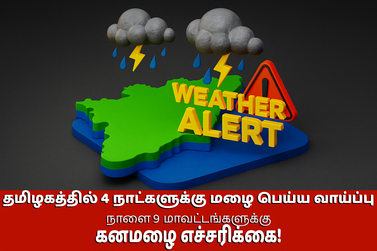 தமிழகத்தில் இன்று (05.11.2025) முதல் 4 நாட்களுக்கு கனமழை பெய்ய வாய்ப்பு உள்ளது என சென்னை வானிலை ஆய்வு மையம் தகவல் தெரிவித்துள்ளது.