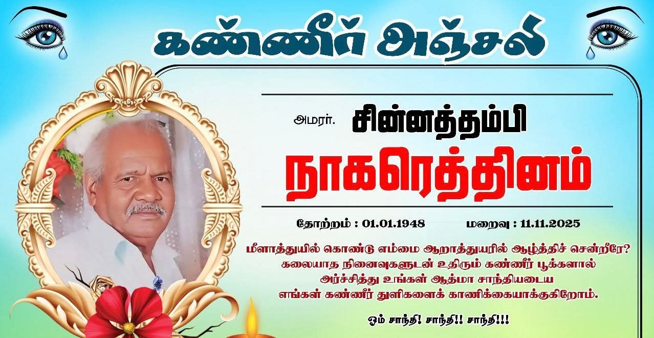மீளாத்துயில் கொண்டு எம்மை ஆறாத்துயரில் ஆழ்த்திச் சென்றீரே? கலையாத நினைவுகளுடன் உதிரும் கண்ணீர் பூக்களால் அர்ச்சித்து உங்கள் ஆத்மா சாந்தியடைய