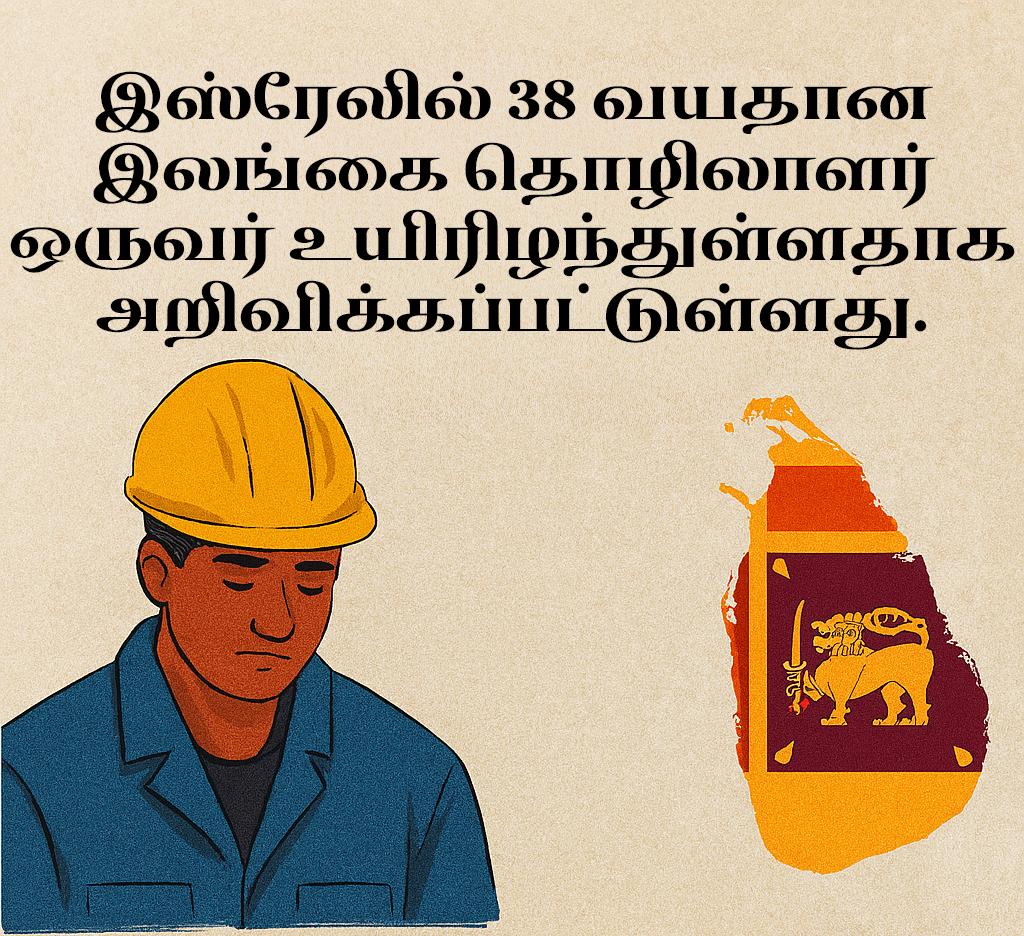 இஸ்ரேலில் 38 வயதான இலங்கை தொழிலாளர் ஒருவர் வியாழக்கிழமை (13.11.2025) இரவு உயிரிழந்துள்ளதாக அறிவிக்கப்பட்டுள்ளது.