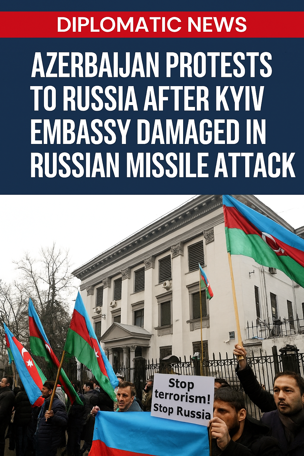 Azerbaijan has formally protested to Russia after its embassy in Kyiv sustained damage during a recent Russian missile strike targeting the Ukrainian capital. The Azerbaijani Foreign Ministry summoned the Russian ambassador to express deep concern over the incident, which endangered diplomatic staff and violated international norms protecting embassies during conflict.