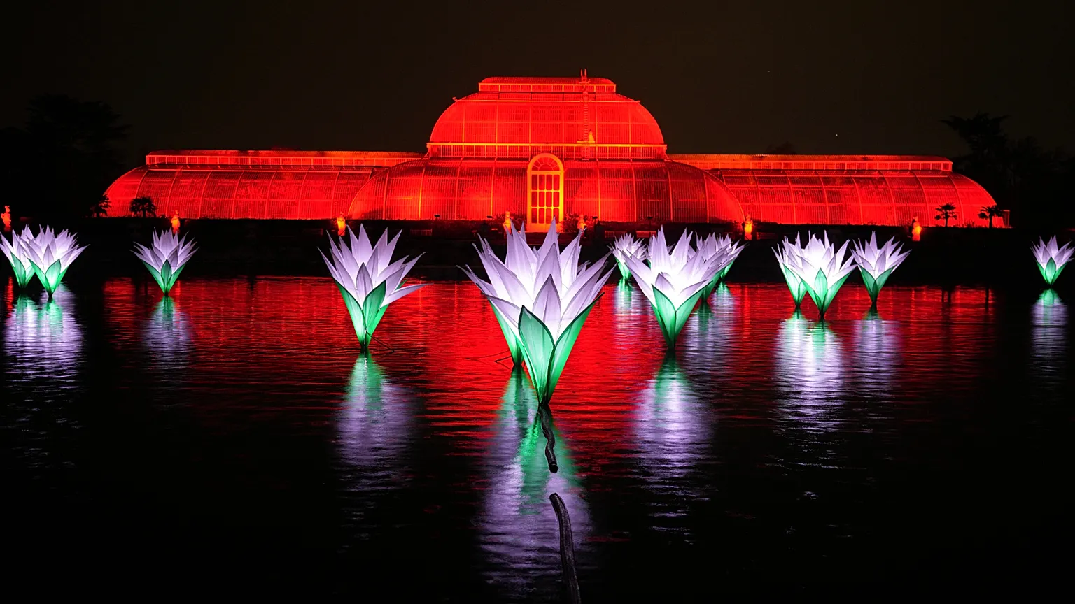 Eight newly commissioned installations, including Christmas Orchestra, A musical light show synced like a real orchestra. In Bloom, A poetic display of floating petals by Dutch artist Wilhelmusvlug. Mycelium Network, Fibre optic strands mimicking fungal filaments, celebrating ecological connectivity. Illuminated bridge across Palm House Pond, offering fresh views of 100 glowing waterlilies. Interactive dance floors with nostalgic music and giant headphones. First-ever lighting of the Great Pagoda, an 18th-century architectural gem.