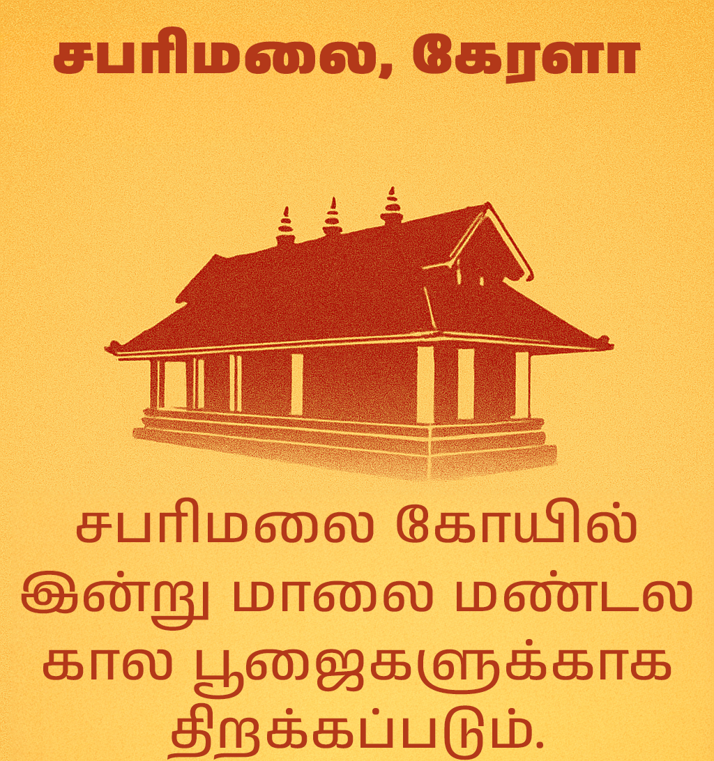 சபரிமலையில் உள்ள ஐயப்பனின் புனிதமான மலைக் கோயில், தென்னிந்தியாவின் மிக முக்கியமான ஆன்மீக பருவங்களில் ஒன்றான வருடாந்திர மண்டல கால பூஜைகளுக்காக இன்று மாலை அதன் கதவுகளைத் திறக்க உள்ளது. நாடு முழுவதிலுமிருந்து மில்லியன் கணக்கான பக்தர்களை ஈர்க்கும் 41 நாள் நீண்ட அனுசரிப்பின் தொடக்கத்தைக் குறிக்கும் வகையில் மண்டல கால காலம் நாளை காலை தொடங்குகிறது.