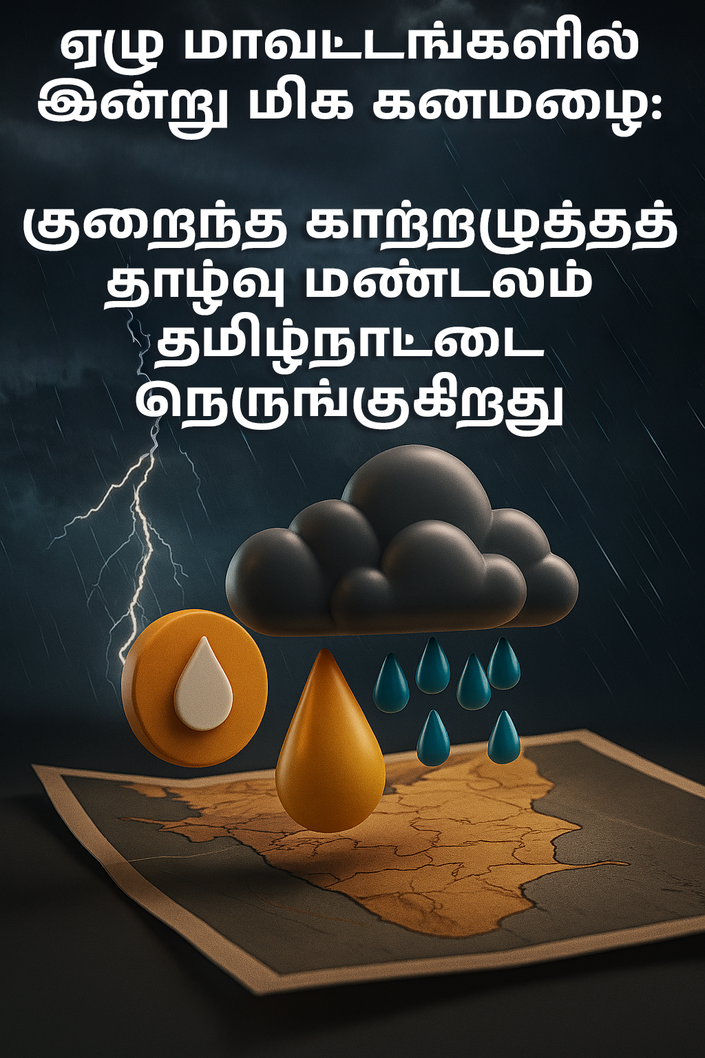 வங்காள விரிகுடாவில் உருவாகியுள்ள குறைந்த காற்றழுத்தத் தாழ்வு மண்டலம் தமிழ்நாட்டை நோக்கி வேகமாக நகர்ந்து வருவதால், இன்று ஏழு மாவட்டங்களில் மிக கனமழை பெய்யும். இந்திய வானிலை ஆய்வு மையம் (IMD) மாநிலத்தின் சில பகுதிகளுக்கு ஆரஞ்சு எச்சரிக்கை விடுத்துள்ளது, கடுமையான மழை, உள்ளூர் வெள்ளம் மற்றும் போக்குவரத்து மற்றும் விவசாயத்திற்கு சாத்தியமான இடையூறுகள் குறித்து எச்சரிக்கை விடுத்துள்ளது.