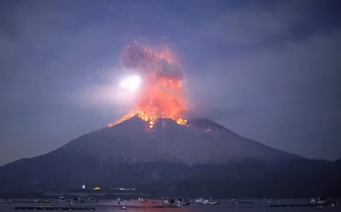 ஜப்பானின் சகுராஜிமா எரிமலை ஞாயிற்றுக்கிழமை அதிகாலையில் வியத்தகு முறையில் வெடித்து, 13 மாதங்களாக நீடித்திருந்த உறக்க நிலையை முடிவுக்குக் கொண்டு வந்தது. இந்த வெடிப்பு, வானத்தில் 4,400 மீட்டர் உயரத்திற்கு சாம்பல் மற்றும் புகையை அனுப்பியது, இதனால் அதிகாரிகள் எச்சரிக்கை அளவை உயர்த்தி, ககோஷிமா விமான நிலையத்திற்கு உள்ளேயும் வெளியேயும் டஜன் கணக்கான விமானங்களை ரத்து செய்தனர்.
