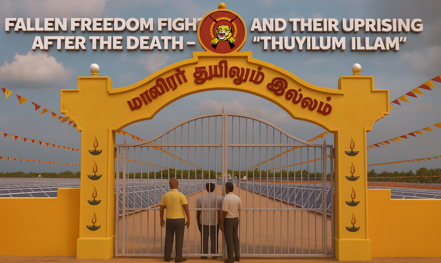 “Thuyilum Illam” – The seeds of the tigers are sown here without any distinction between male and female. The phrase conveys the LTTE’s notion of a hero. The first “Thuyilum Illam” was started in Koppay. In the early days of Koppay, “Thuyilum Illam” soil, the remains of the freedom fighters were buried and burnt.