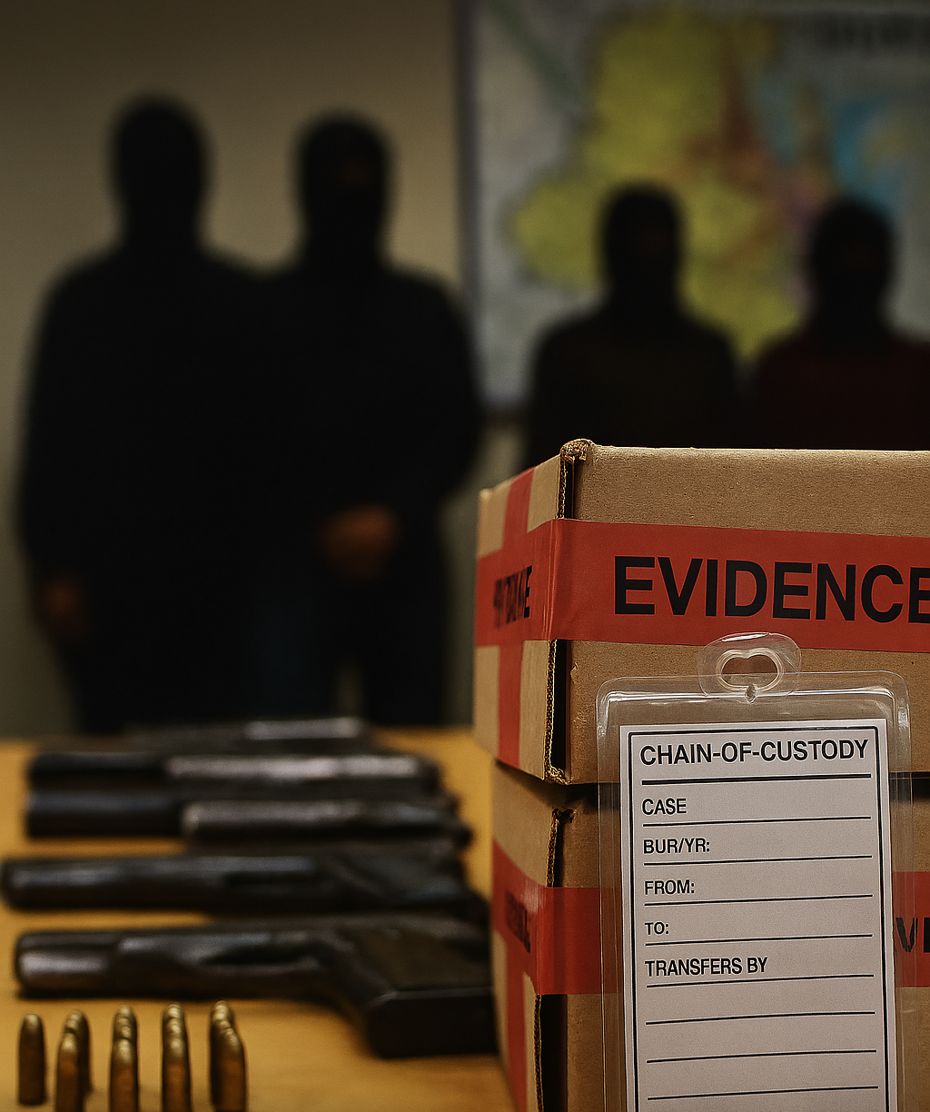 இந்த கும்பல் பாகிஸ்தான் ஐஎஸ் பயங்கரவாத அமைப்பு உடன் தொடர்புடைய நபர்களின் உத்தரவின் பேரில் செயல்பட்டு வந்துள்ளது. ஆயுதங்கள் முதலில் பாகிஸ்தானுக்கு கொண்டு செல்லப்பட்டு, பின்னர் அங்கிருந்து இந்தியாவிற்கு கடத்தப்பட்டன. இந்த நபர்கள் இதுவரை இந்தியாவில் எத்தனை ஆயுதங்களை விற்றுள்ளனர். இந்த கும்பலுக்கு பின்ணியில் இருப்பவர்கள் யார் என்பது குறித்த போலீசார் தீவிர விசாரணை நடத்தி வருகின்றனர்.