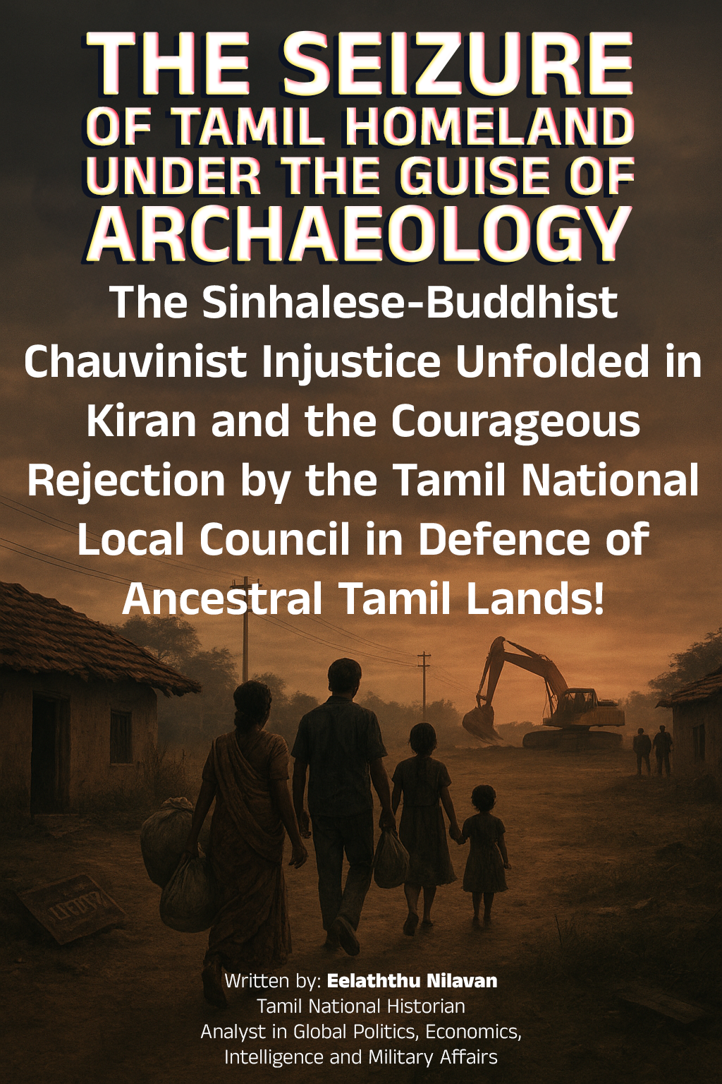 In the post-war Tamil homeland of Eelam, the denial of Tamil rights has continued in multiple forms, evolving into systematic efforts that threaten the very existence of the Tamil people. Among these, one of the most dangerous and long-term destructive strategies is the organised land grab carried out under the banner of the Sinhalese-Buddhist Department of Archaeology.
