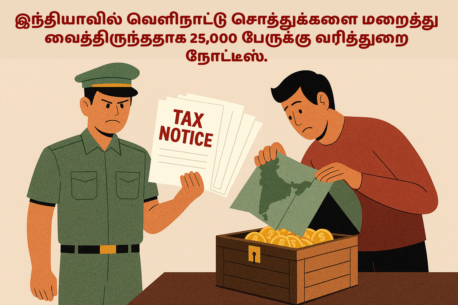 வெளிநாட்டு சொத்துக்கள் தொடர்பான விபரங்களை தங்களது வருமான வரி தாக்கலில் தெரிவிக்காத 25,000 பேருக்கு குறுஞ்செய்தி அல்லது மின்னஞ்சல் அனுப்ப உள்ளதாக வருமான வரித்துறை வட்டாரங்கள் தெரிவிக்கின்றன.