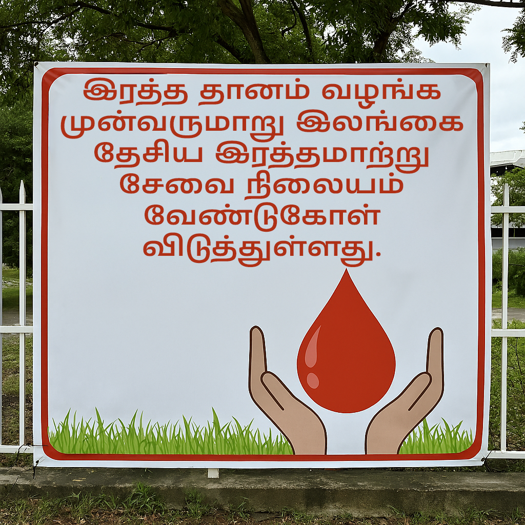 அதன்படி, நாரஹேன்பிட்டி தேசிய இரத்த மத்தியஸ்தானத்தில் காலை 8.00 மணி முதல் மாலை 6.00 மணி வரை ( 011 236 9931, 011 722 0677) இரத்த தானம் வழங்க முடியும்.