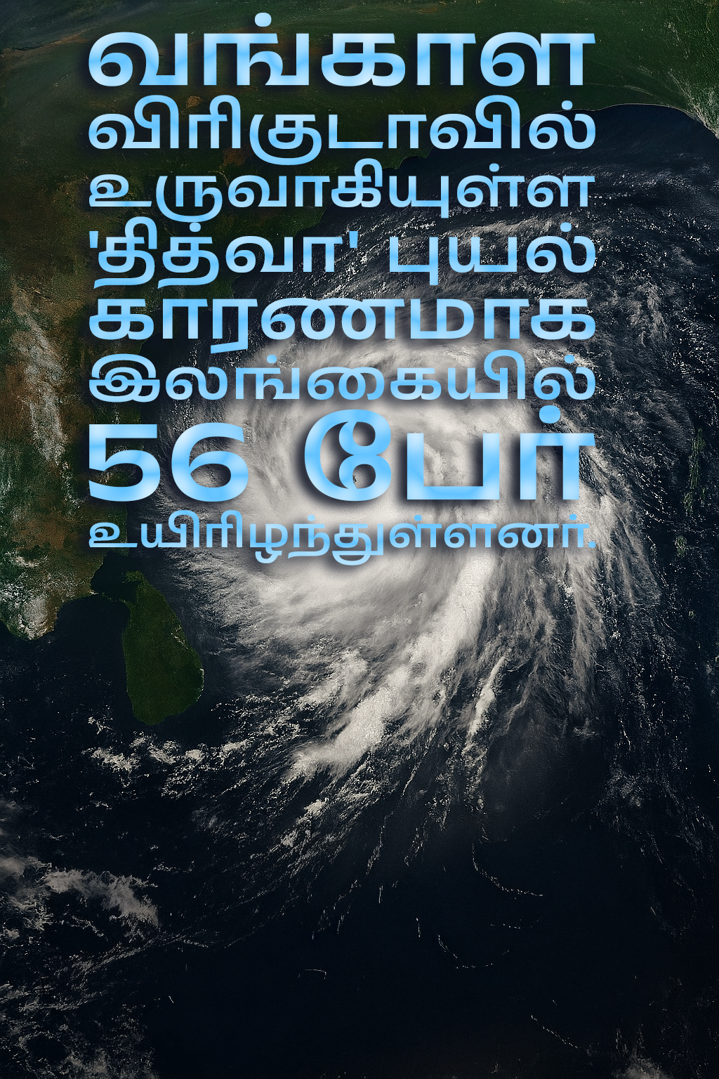 வங்காள விரிகுடாவில் உருவாகியுள்ள ‘தித்வா’ புயல் காரணமாக இலங்கையில் பலத்த மழை பெய்து வருகிறது. இதுவரை அங்கு மழை தொடர்பான விபத்துகளில் 56 பேர் உயிரிழந்துள்ளனர்.