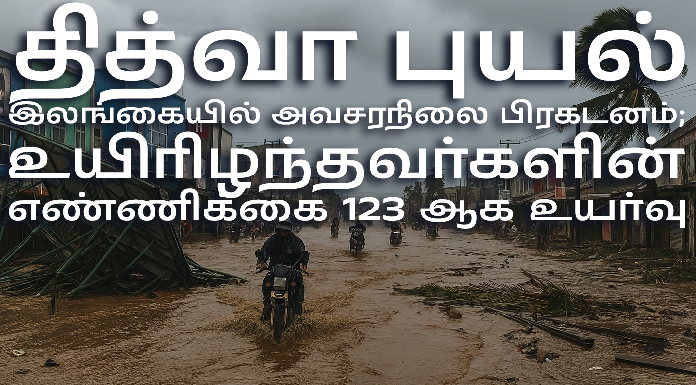 இலங்கையில் அவசர நிலை பிரகடனப்படுத்தப்பட்டு உள்ளது. டிட்வா புயலுக்கு உயிரிழந்தவர்களின் எண்ணிக்கை 123 ஆக உயர்ந்துள்ளது.
