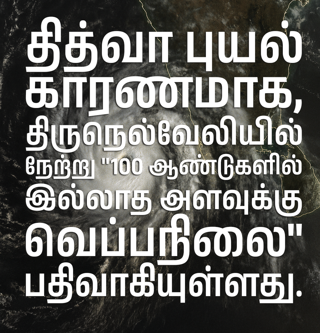 திருநெல்வேலியில் 100 ஆண்டுகளில் இல்லாத அளவுக்கு நேற்று 22 டிகிரி வெப்பநிலை பதிவு செய்யப்பட்டது. டிசம்பர் – ஜனவரி மாதங்களிலும் இதுபோன்ற பகல் நேர குளிர் இதற்கு முன் பதிவாகவில்லை என்பது குறிப்பிடத்தக்கது.