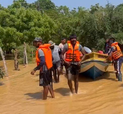 இவ்வாறு வெள்ளத்தில் இருந்து விமானம் ஊடாக மீட்கப்பட்டவர்களை சீனாபே விமான படைதளத்திற்கும் சேருவல மகாவலி விளையாட்டு மைதானத்திற்கும் கொண்டுவரப்பட்டனர்.