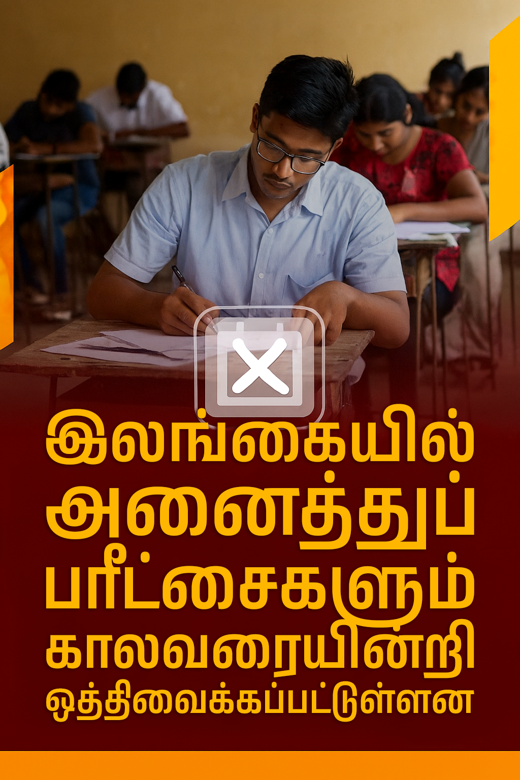 மேலும், அனைத்துப் பரீட்சைகளுக்கான புதிய திகதிகள் உரிய நேரத்தில் அறிவிக்கப்படும் என்று பரீட்சைகள் ஆணையாளர் நாயகம் இந்திக லியனகே தெரிவித்தார்.