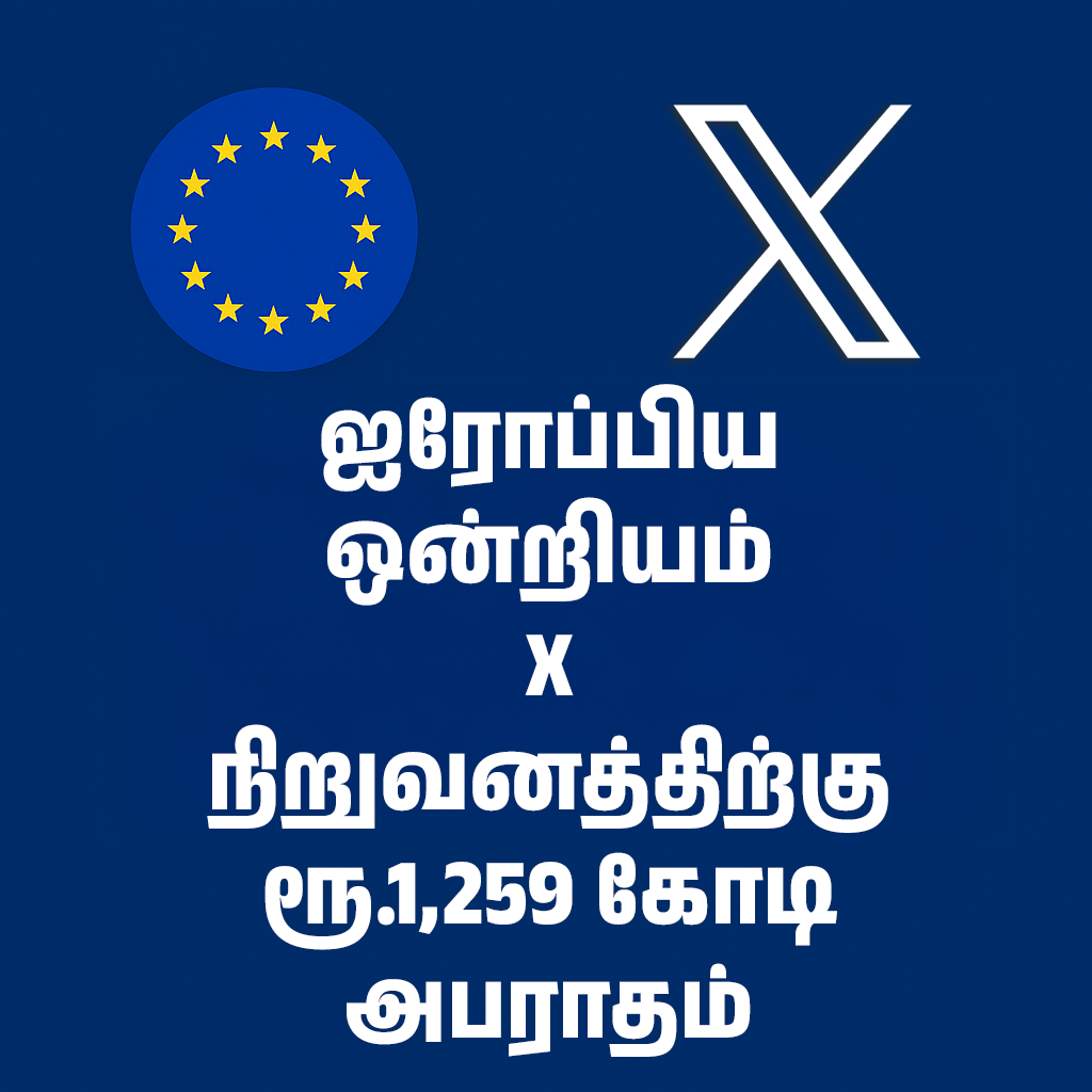 ஐரோப்பிய ஒன்றியம் (EU) தனது டிஜிட்டல் சேவைகள் சட்டம் (Digital Services Act – DSA) மீறப்பட்டதாகக் கூறி, எலான் மஸ்க் தலைமையிலான சமூக ஊடக நிறுவனம் X (முன்னாள் Twitter) மீது ரூ.1,259 கோடி (அமெரிக்க டாலர் 140 மில்லியன்) அபராதம் விதித்துள்ளது.