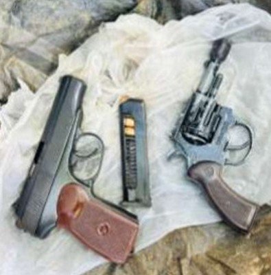இத்தாலியில் தயாரிக்கப்பட்ட ரிவோல்வர் ரக துப்பாக்கி ஒன்றும், அதற்குரிய 4 தோட்டாக்களும், பிஸ்டல் ரக துப்பாக்கி ஒன்றுமே இவ்வாறு கண்டுபிடிக்கப்பட்டுள்ளன.