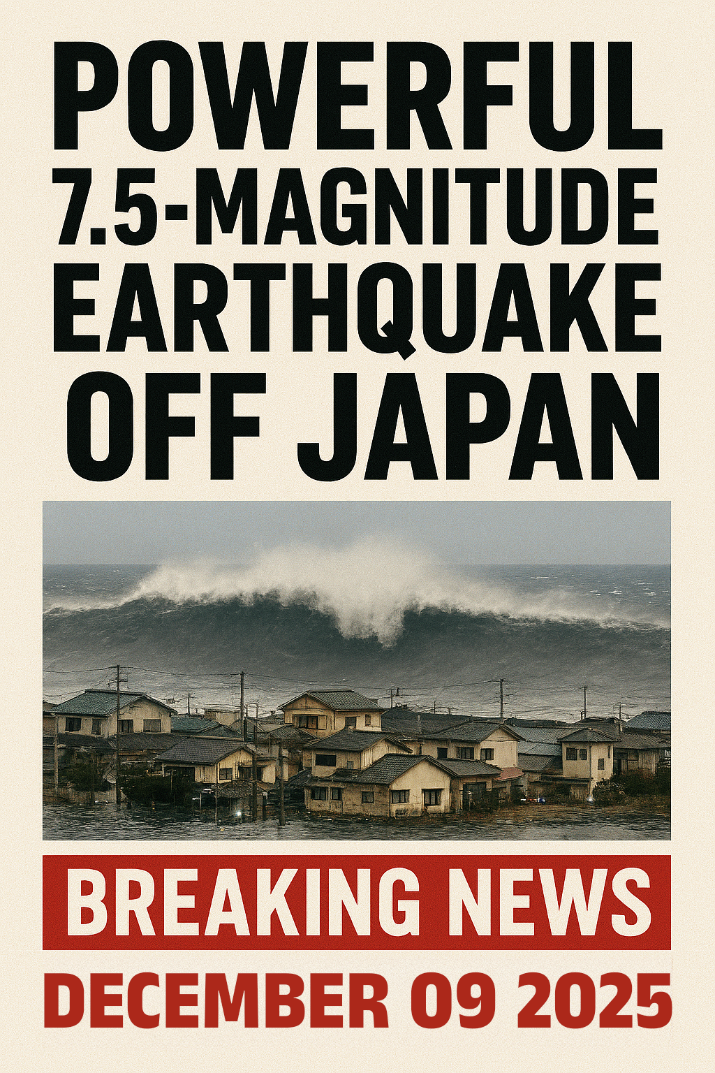 A strong earthquake measuring 7.5 on the Richter scale jolted northern Japan late Monday night, unleashing tsunami waves and forcing tens of thousands of residents to evacuate coastal areas. The quake struck at approximately 11:15 p.m. local time (2:15 p.m. GMT), with its epicenter located about 80 kilometers off the coast of Aomori Prefecture, the northernmost region of Honshu, Japan’s main island.