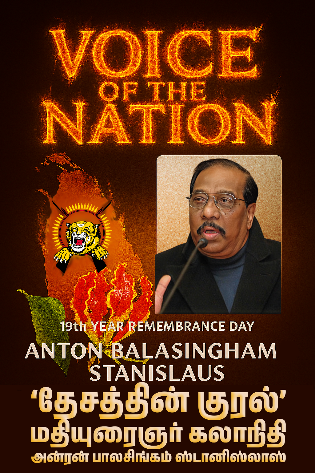 ‘தேசத்தின் குரல்’ மதியுரைஞர் கலாநிதி அன்ரன் பாலசிங்கம் ஸ்டானிஸ்லாஸ் அவர்களின் 19’ம் ஆண்டு வீரவணக்க நினைவு நாள்.