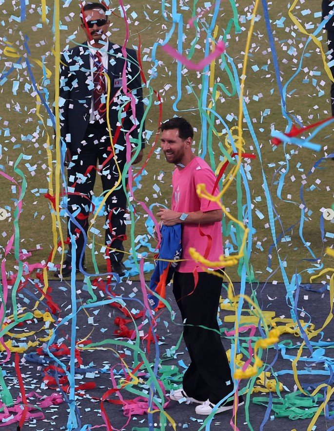 மைதானத்தில் ரசிகர்களிடம் மெஸ்ஸி பேசுகையில், ‘இந்தியா வந்தது உண்மையிலேயே ஒரு அழகான அனுபவமாக இருந்தது. ரசிகர்கள் கொடுத்த அன்புக்கும், பாசத்துக்கும் மிக்க நன்றி’ என தெரிவித்தார்.
